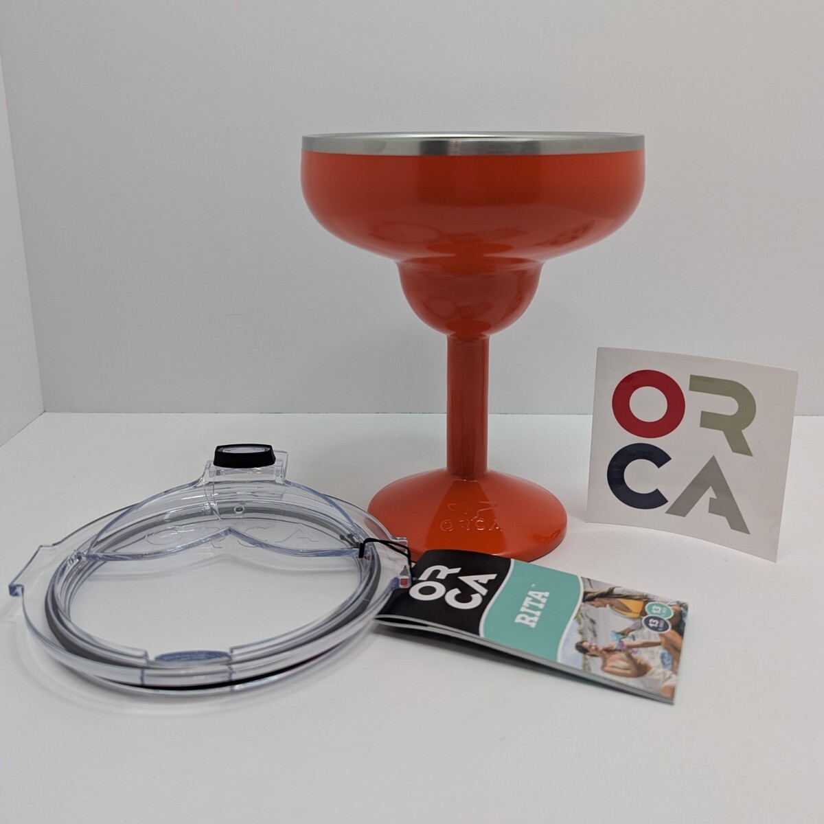 2 ORCA Rita Persimmon Orange 13oz Insulated Stainless Steel Margarita Cup w/ Lid