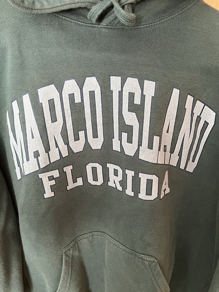 Marco Island Florida Beach Pullover Hoodie Sweatshirt Men’s XL Green White Print