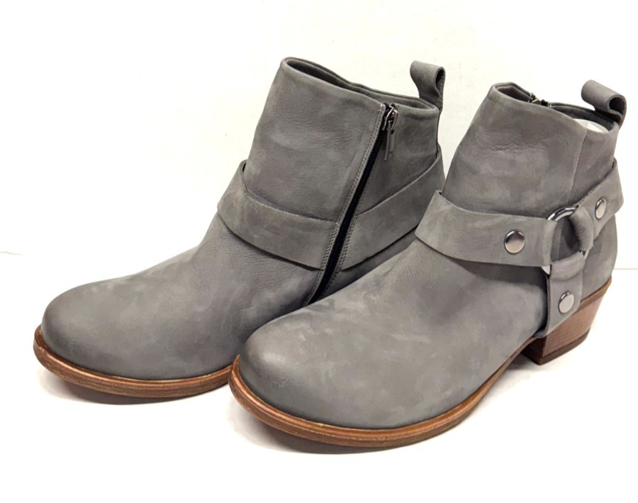 MIZ MOOZ NUBUCK LEATHER BOOTIE SIDE ZIP BUCKLE GRAY 37EU / 7US # Z-150