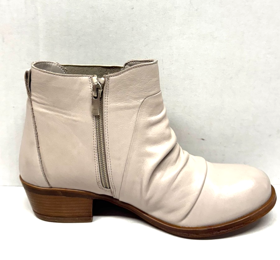 MIZ MOOZ SOFT RUCHED LEATHER BOOTIE SIDE ZIP PEARL 37EU / 7US # Z-154