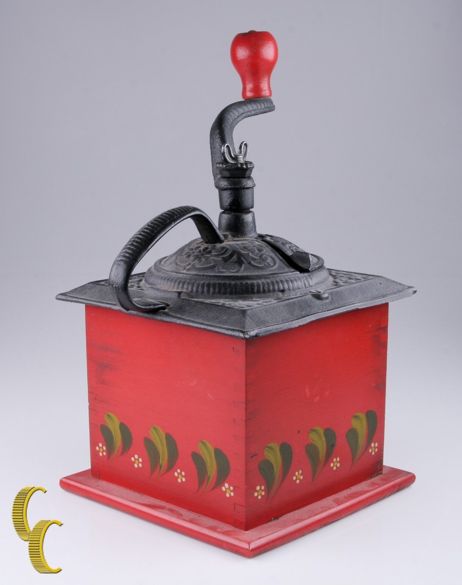 Vintage Hand Painted Coffee Grinder Red Floral Design