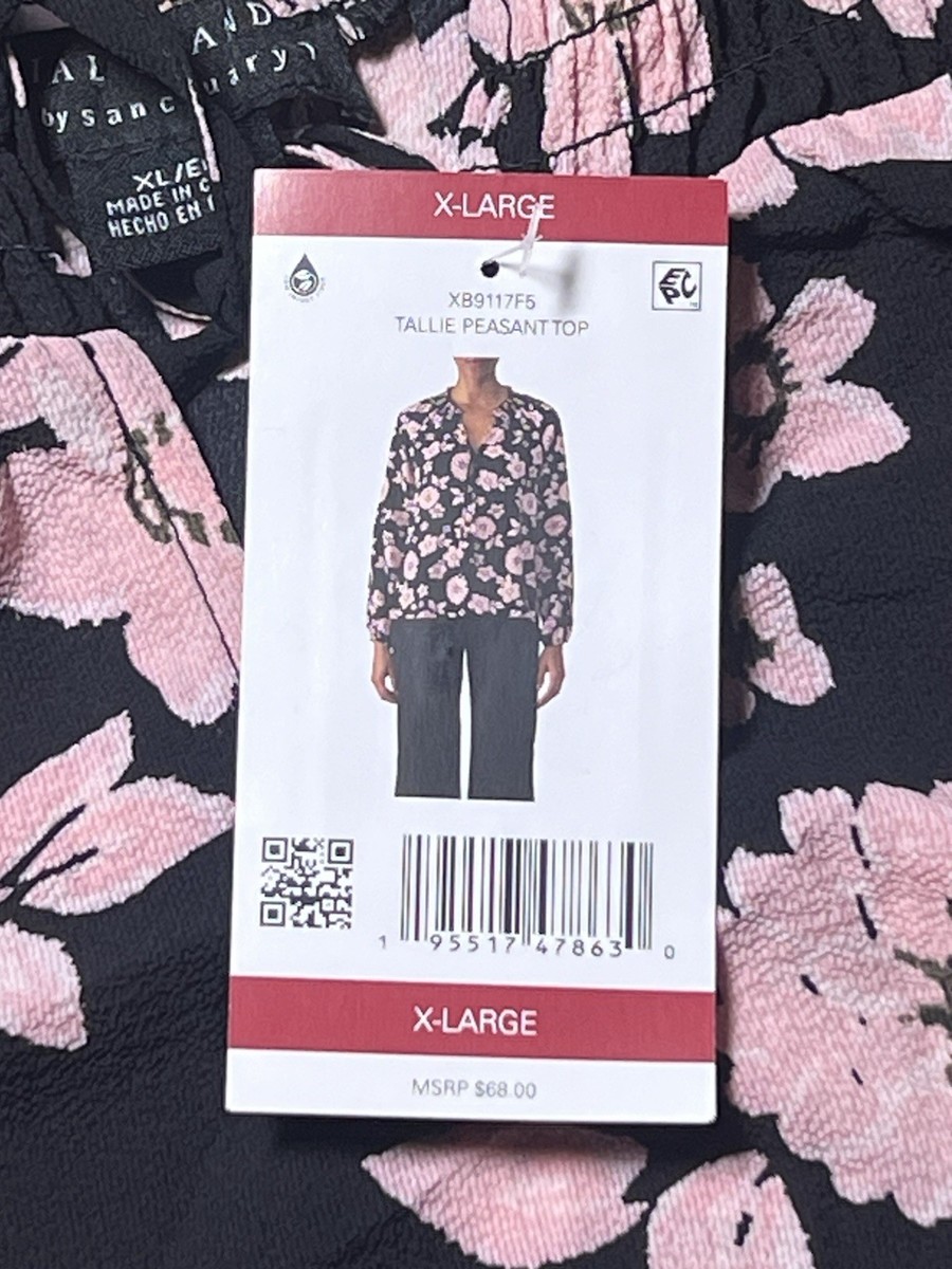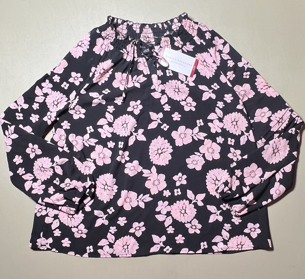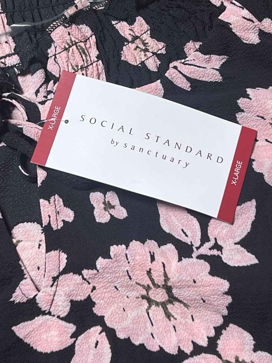 Social Standard By Sanctuary Women’s XL Tallie Peasant Top Black Pink Flowers