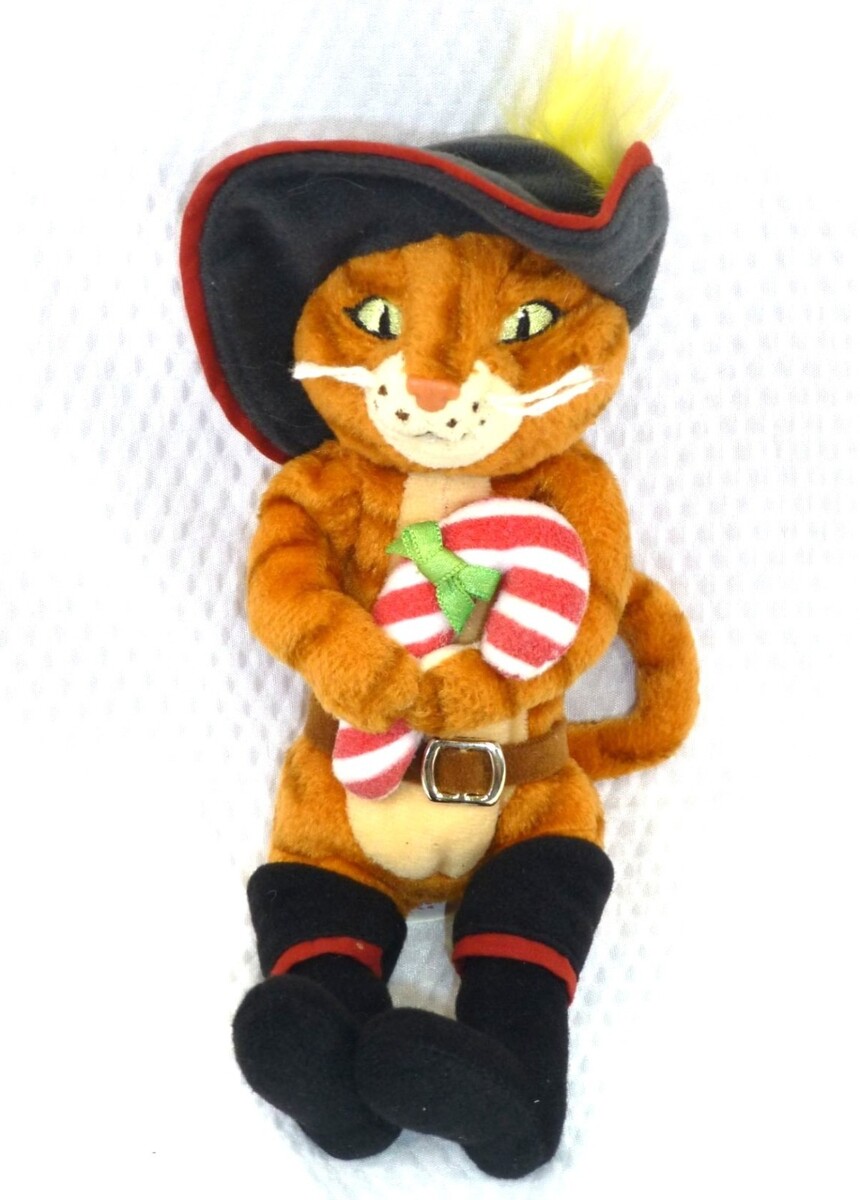 Ty Puss In Boots Tabby Cat Plush Toy 2008 Shrek The Halls Candy Cane & Hat
