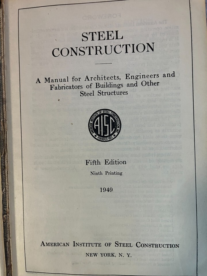 Steel Construction, Manual Of The American institute of steel construction 1949