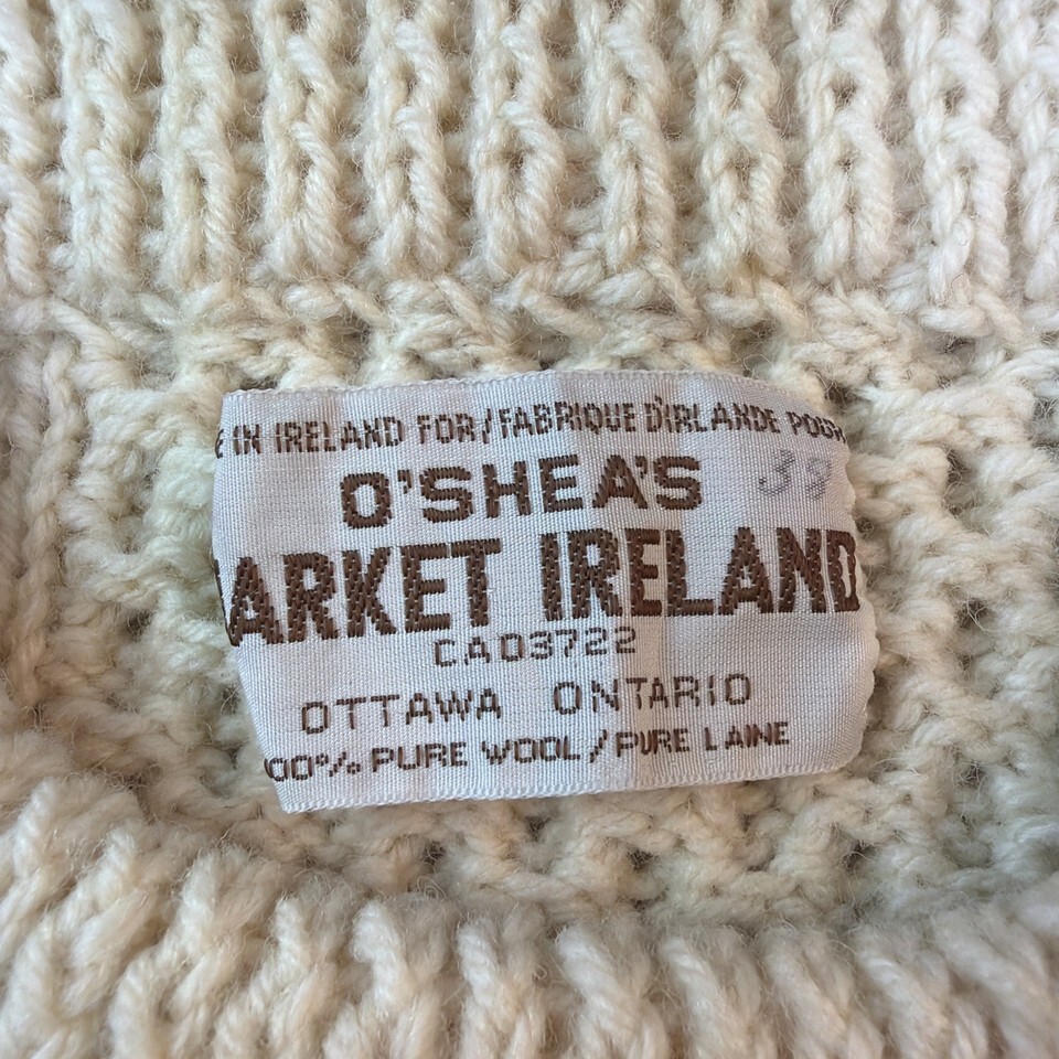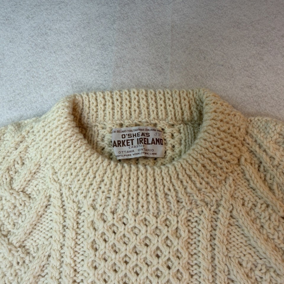 This is a vintage Irish Aran sweater, traditionally made in Ireland from 100% pure wool, featuring rich cable knit, honeycomb, and basket stitch detailing throughout. The soft cream / natural tone pairs perfectly with today?s most in-demand styles ? from coastal grandmother to Scandinavian minimalism.