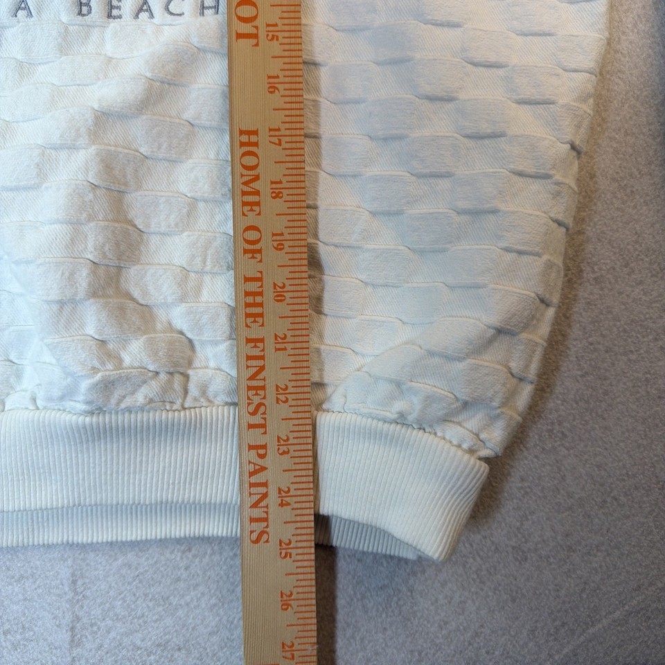 The relaxed cut and soft cream color make this an easy piece to style ? perfect for coastal prep, golf-core, quiet luxury casual, and retro vacation looks. Great worn oversized or as a laid-back layering piece.