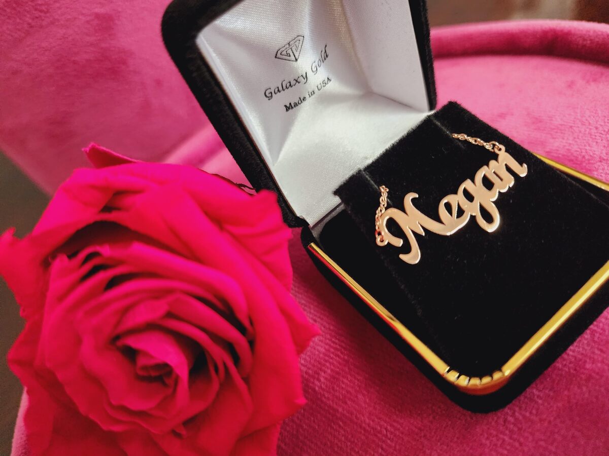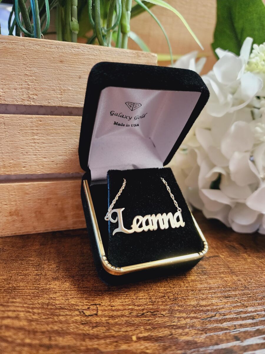 Product description: LAURA FONT 14k Solid Gold Custom Name Necklace Personalized Customizable Custom Made Any Name Mother Day Gift Women Nameplate Dainty Men Scripture Handcrafted Made in USA Fine Jewelry High Polished This customizable necklace is handcrafted in the USA here in Los Angeles California. You can enter any text or name - sweet words longitude, coordinates, names, initials, special months to design your very own unique necklace, makes you special, and show off your personality, loyalty ingenuity. Treat yourself or someone special to a bold, beautiful necklace that is truly one of a kind! With numerous designs available to complement your unique style perfectly! Click on ''Customize Now'' to make it your own. One name or word up to 10 characters no special characters. First Letter capitalized - up to letters can be capitalized. perfect gift for women, mom, wife, sister, aunt, best friends, bridesmaid, loved ones or a special treat for yourself, and all occasions: Mother's Day, Valentines, Wedding, Anniversary, Birthday, Christmas. Chain Length Available: 14inch, 16 Inch, 18inch, 20 Inch, 22 Inch. Chain Thickness 1.15mm Available Gold Color ? 14K Solid Yellow Gold, 14k Solid Rose Gold, 14k Solid White Gold Stamped Gold 14k Solid MADE IN USA. Gift Box Available.