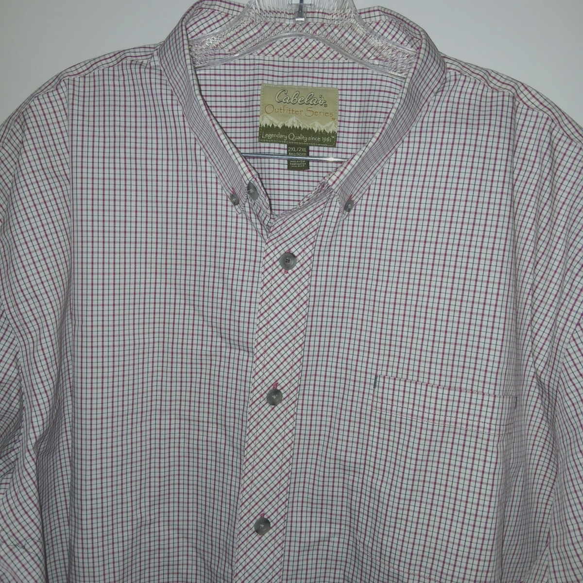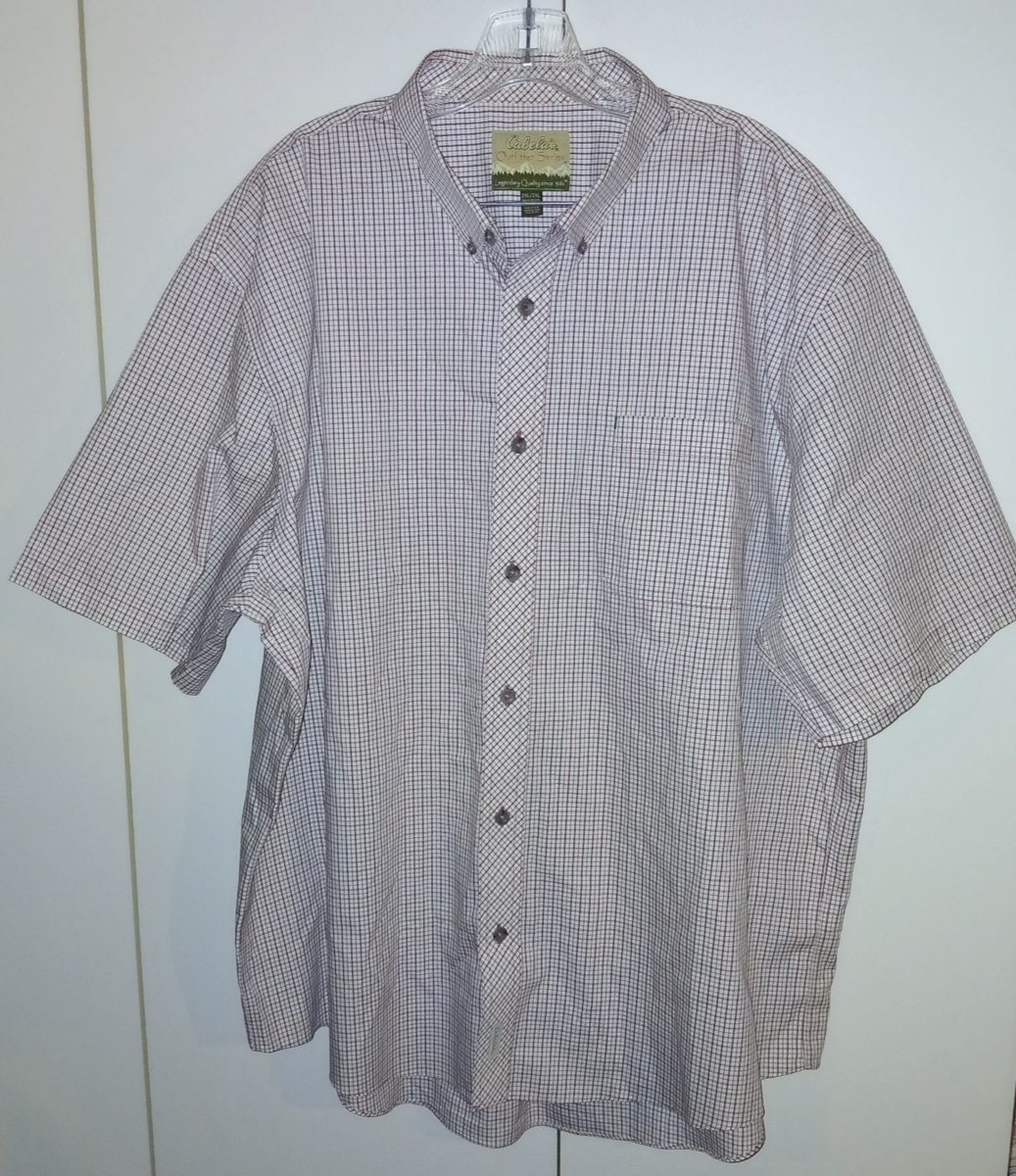 THIS IS A GREAT CABELA'S MEN'S SHORT-SLEEVED 100% COTTON BUTTON-DOWN SHIRT SHIRT IN A SIZE 2XL REGULAR. IT IS NEW, WITHOUT THE TAGS. SORRY MY CAMERA DISTORTS SMALL PLAIDS BUT CLOSE-UP PICTURE IS ACCURATE.