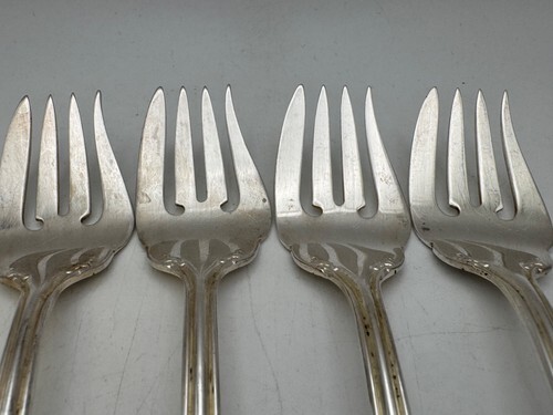 These salad forks measure 6 3/8" in length and are in very good estate condition with no excessive wear.