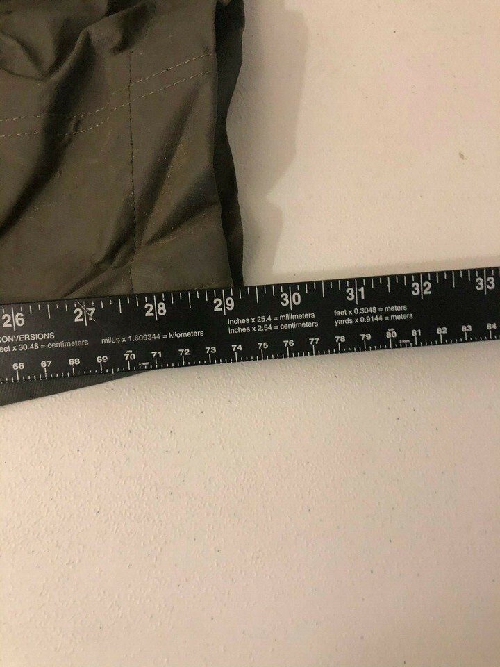 These overalls are pre-owned and has seem much wear with visible worn parts in the material. These pants are meant to be water resistant, but are more then 30yrs old, so they may not retain the waterproofing on the material.