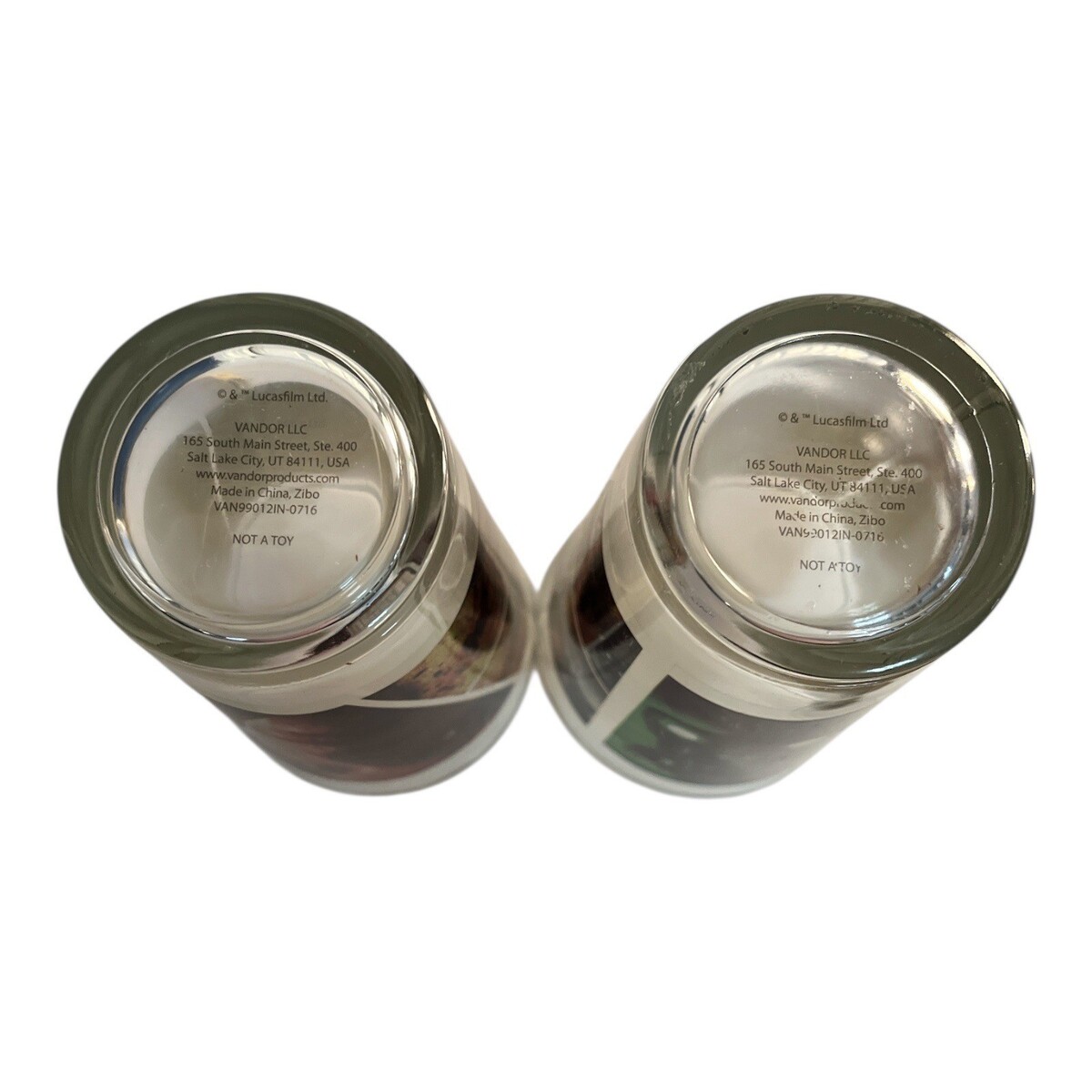 This set of two officially licensed *Star Wars: Rogue One* pint glasses by Vandor appears unused and features striking full-color movie artwork panels on clear glass. A great addition for Star Wars collectors or display-quality modern movie memorabilia.