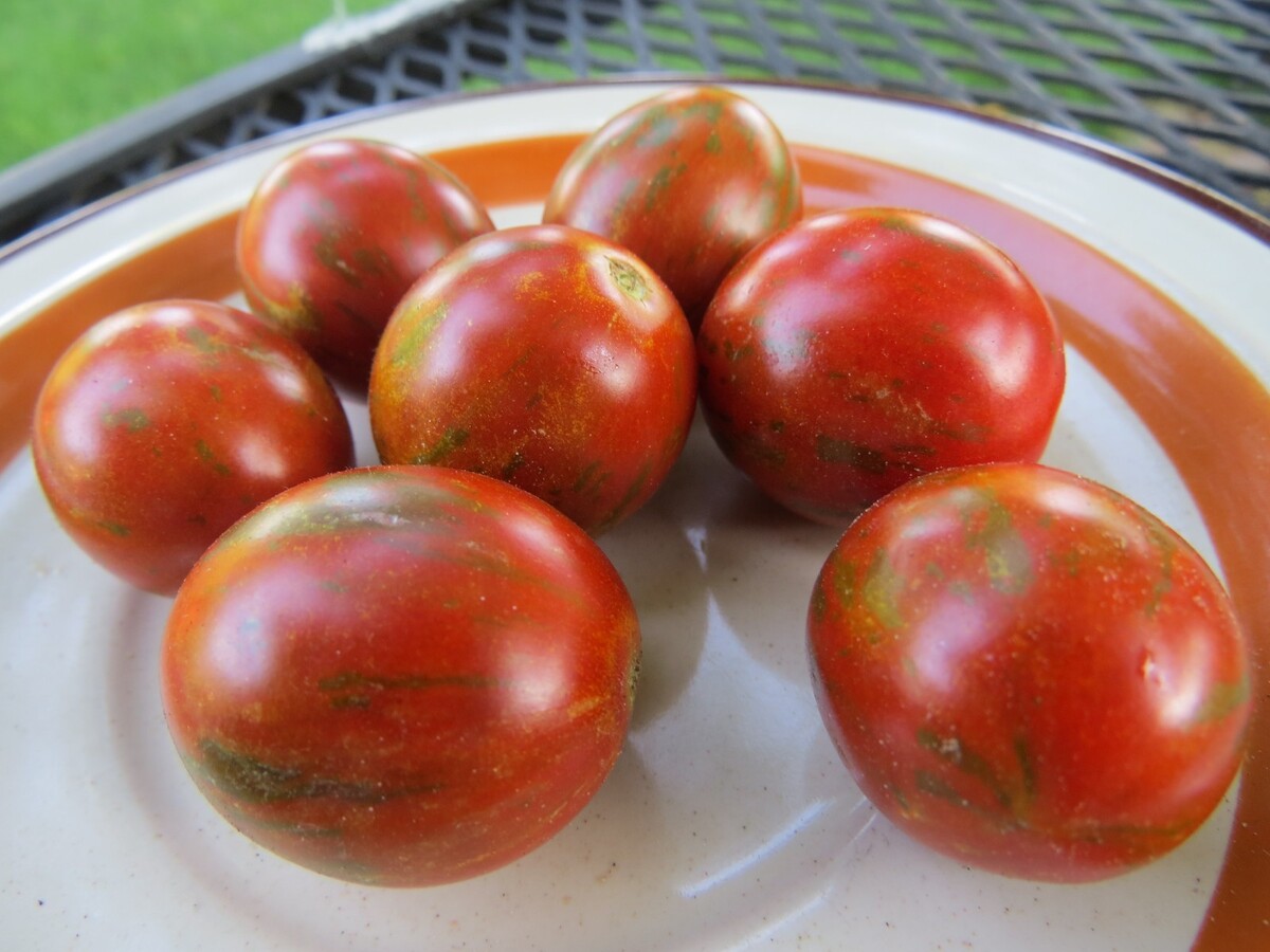 Danube - chunky chocolate striped cherry tomato with robust flavor