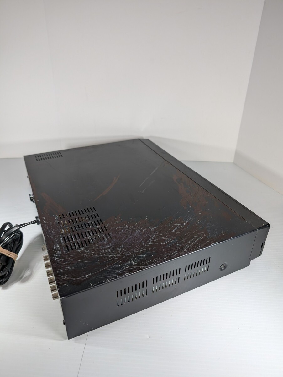 The Samsung DVD-VR357 VHS VCR / DVD Recorder Combo Player is a versatile entertainment device that allows you to play both VHS tapes and DVDs. With its sleek black design, this unit features various output options including component, coax, composite, and HDMI. It is equipped with 4 VCR heads and can record on DVD-R, DVD+RW, and DVD+R formats. The device does not come with a remote but has been tested and confirmed to function properly. Perfect for those looking to have a reliable and efficient DVD and VHS player in their home.