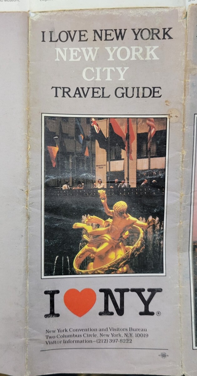 *L2) Vintage 1983 I Love New York City Travel Guide Foldable Pocket Map