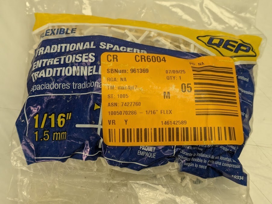 Flexible Tile Spacers maintain consistent grout joints and align tiles in floor or wall installations. These spacers are made of flexible plastic that allows slight compression as needed during tile installation. Reusable and compatible with various tile types, these spacers are great to use for professional-looking results. Not recommended for large format wall tiles 15 in. x 15 in. or larger.
