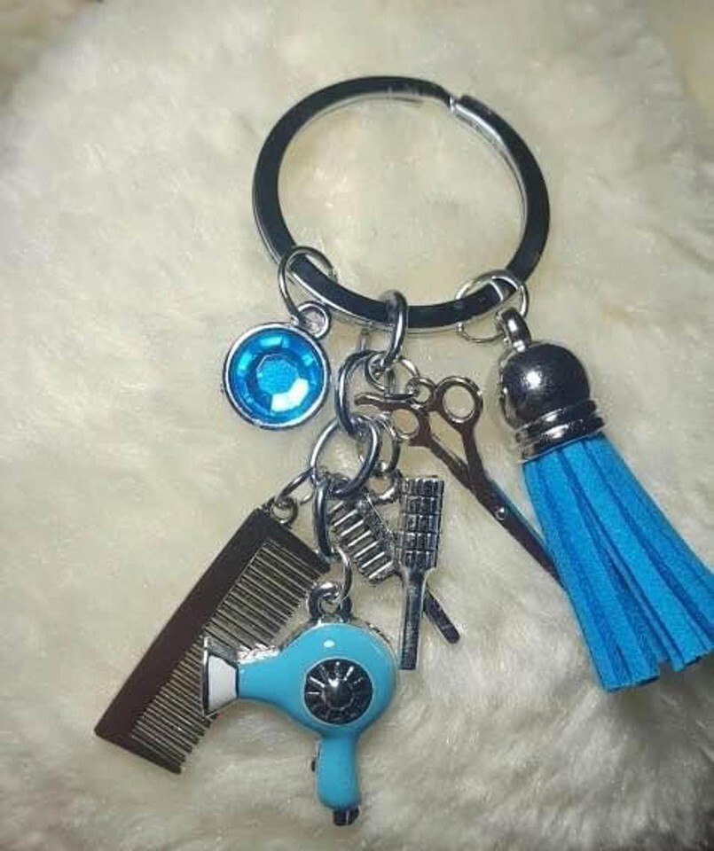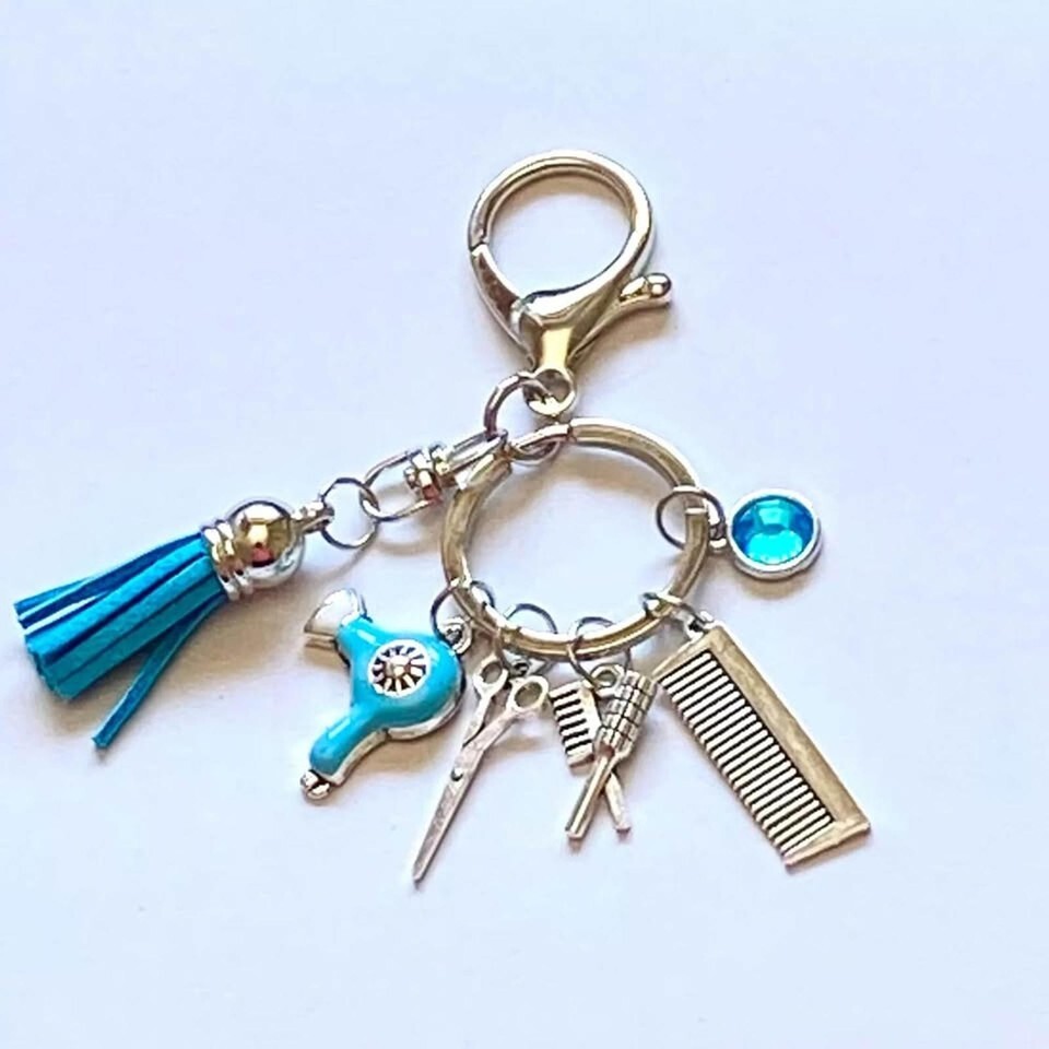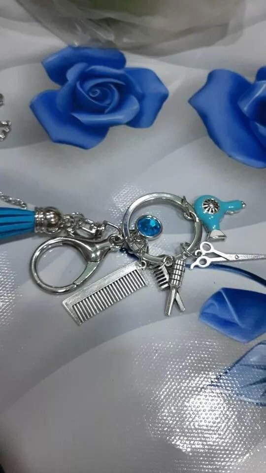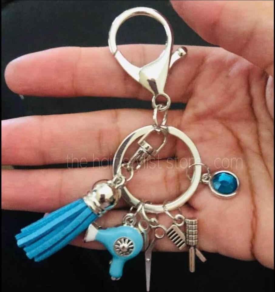 Beautiful Hairdresser Stylist Cute BLUE Keychain Clip With Jewel. A Unique Gift!