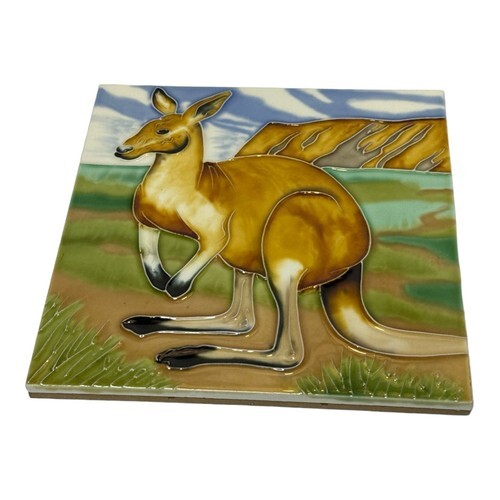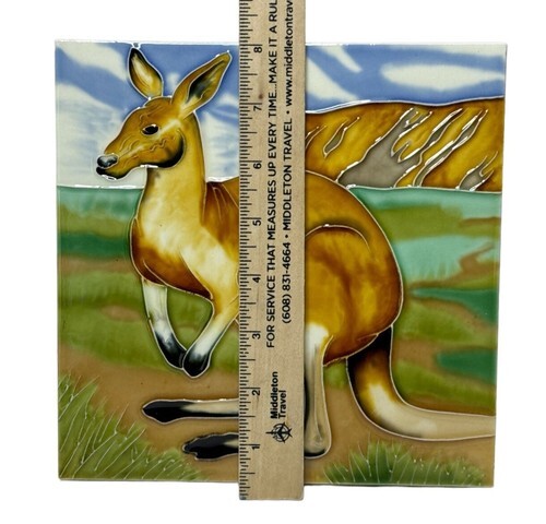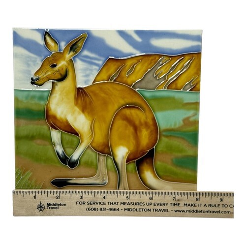 Kangaroo Australia Decorative Ceramic Art Tile w/ Hang & Stand Options