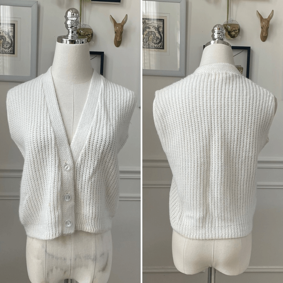 Vintage 60s Glentex Ivory Wide Ribbed Cropped Sweater Vest S