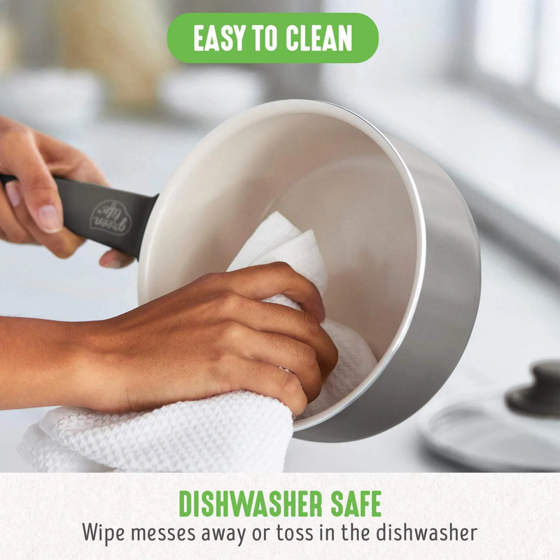 GreenLife 18-Piece Soft Grip Toxin-Free Healthy Ceramic Non-Stick Cookware Set, Gray, Dishwasher Safeme} By GreenLife