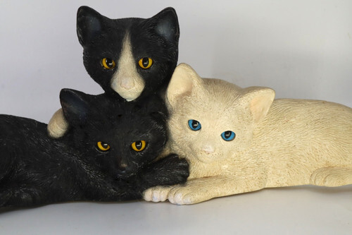 (internal #Y-CAT-SL-511) Excellent carving of a sleeping kitty cat is 1" long x 3/4" wide x 1/2" tall. Superb quality of polished, DYED BLUE HOWLITE gemstone, this gem has been hand-carved in China.