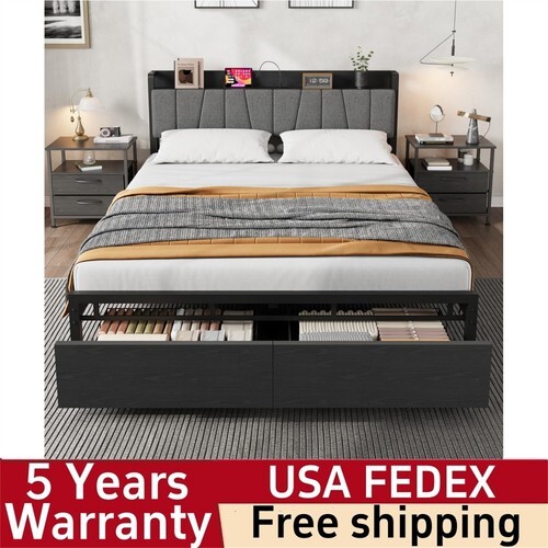Queen Victorian Bed Frame, Storage, No Box Spring, Quick Install, Black