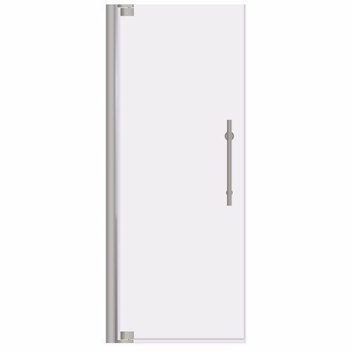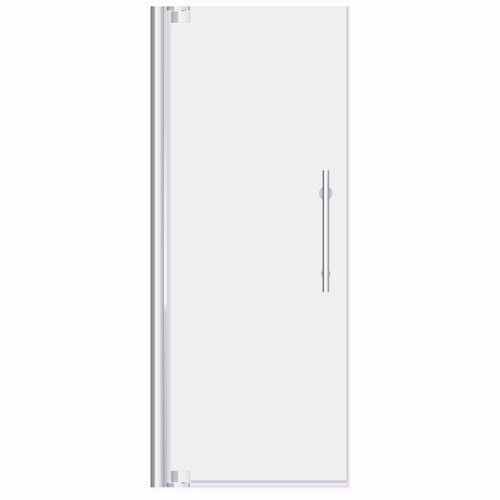 The pivot swing shower door measures 34? W x 72? H and adjusts easily to widths from 34? to 35.2? (3/5 inch adjustment on both sides).