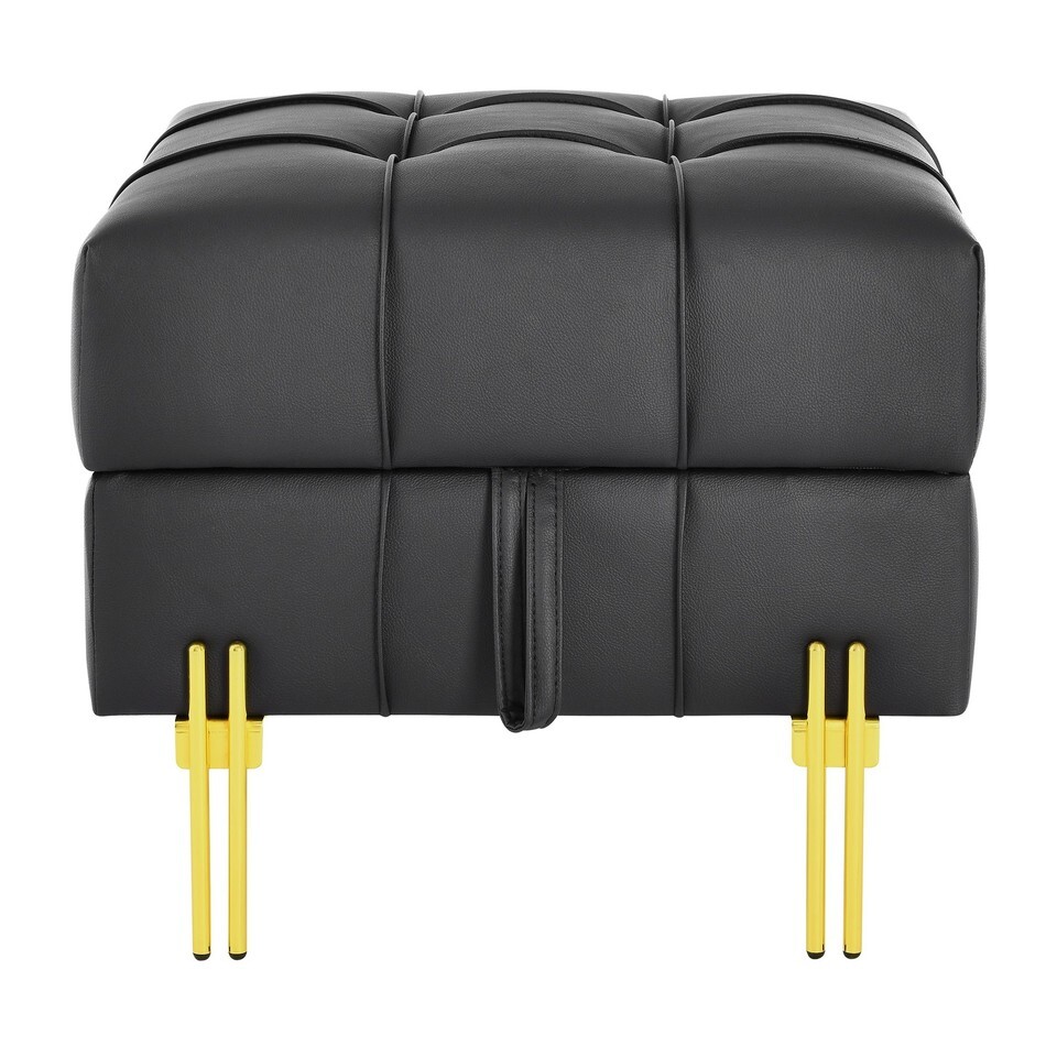Anti-Scratch Black Leather Storage Ottoman - Pet Friendly Entryway Bench