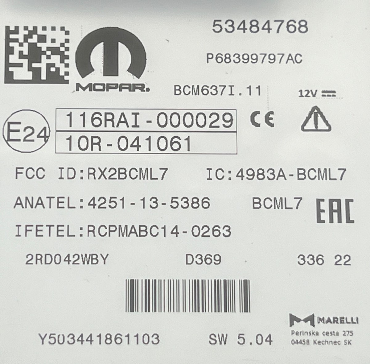 68399797AC Body Control Module For 2015-2020 Dodge Ram Pro Master 1500 2500 3500