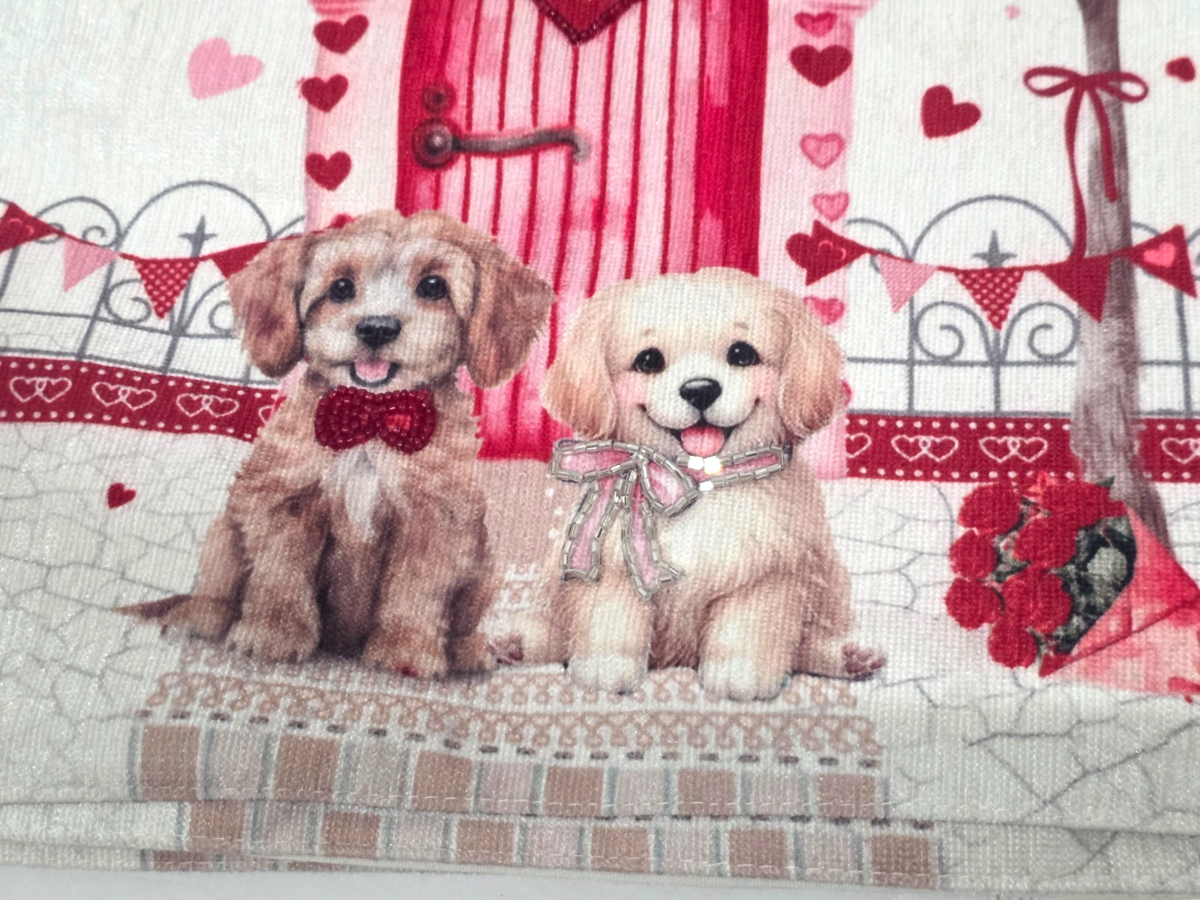 Valentine's Day Puppy Dogs Pink Red Hearts and similar items