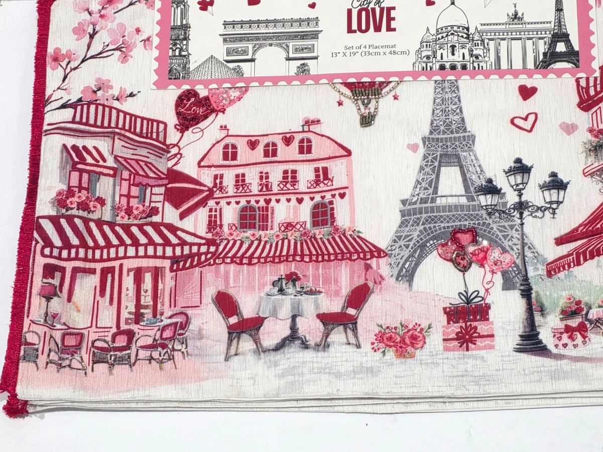 Valentine's Day Paris Eiffel Tower Cafe Romance Red Pink Placemats Set of 4
