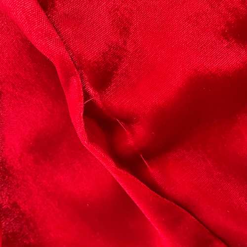 Vintage Bulli e Pupe red velvet midi length pencil skirt from Henri Bendel. This skirt has been modified and shortened, and the fabric Contant tags have been removed. The back of the skirt is double vented for easy movement. The brand tags are along the waistband on the interior in the front, in the back there is a zipper. . No fabric Contant tags. Lined but the lining is raw. As a matter fact, both hams are raw and along the back center seam. There is a 2 inch gap in the seam that could be easily fixed. Laying flat the skirt measures approximately 30 inches long and 12 inches straight across the waist. Meant to set a little high on the waist. Measure 17.5 inches across the hip. The velvet is luxurious and soft. And a rich ruby red color.