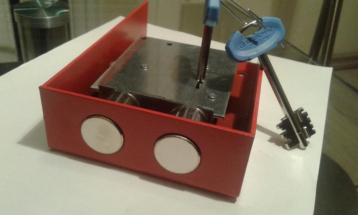 About this item SECUREMME SC 2810 High Security Safe Lock Lever Type .Anti Pick Lateral double bitted safe lock with 8 levers Chromium-plated steel bolt with 2 pistons O 22 mm In the unlocked position of the lock is impossible to remove the key Dimensions(mm):159x100x38