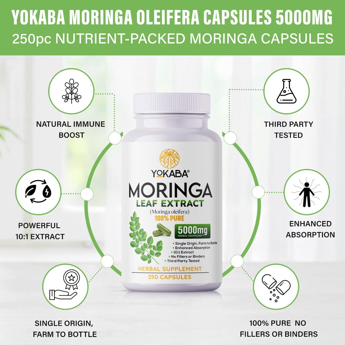 Unleash the Power of Nature with Yokaba 5000mg Moringa Oleifera Leaf Powder Capsules (250 Count)