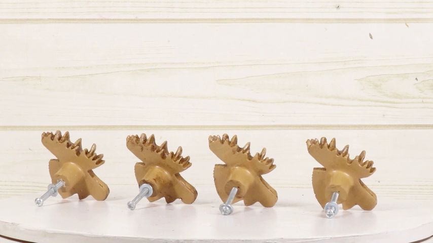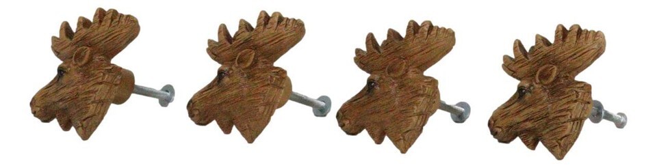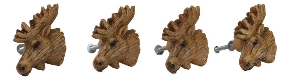 Set Of 4 Western Rustic Forest Elk Moose Faux Wooden Cabinet Door Pull Knobs