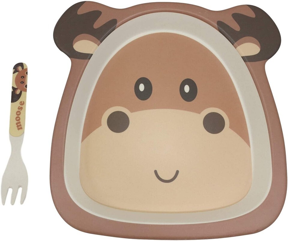 Ebros Wild Moose 5 Piece Organic Bamboo Dinnerware Set For Kids Children Toddler