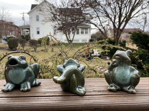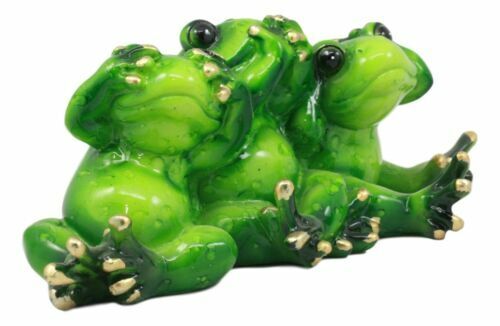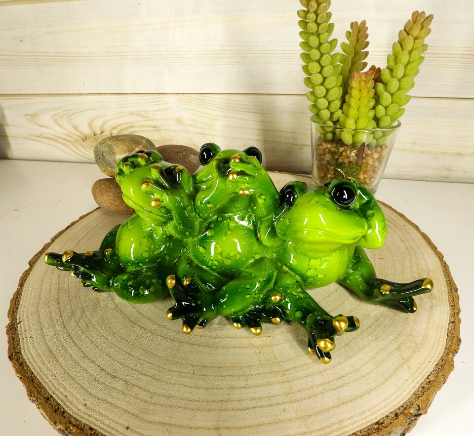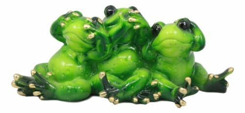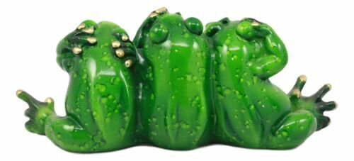 Whimsical See Hear and Speak No Evil Trio Frogs Statue 7.5"L Pond Animal Decor