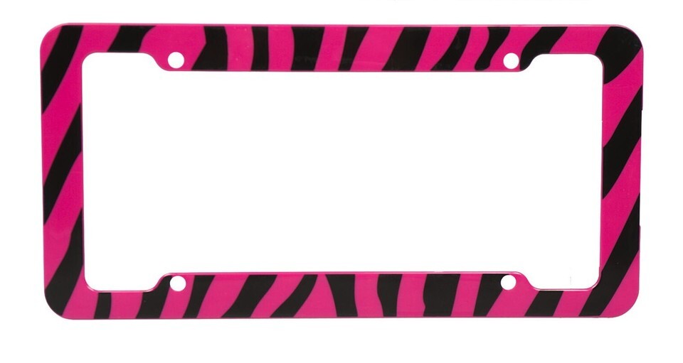Display your license plate with style with this pink and black zebra license plate frame.