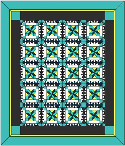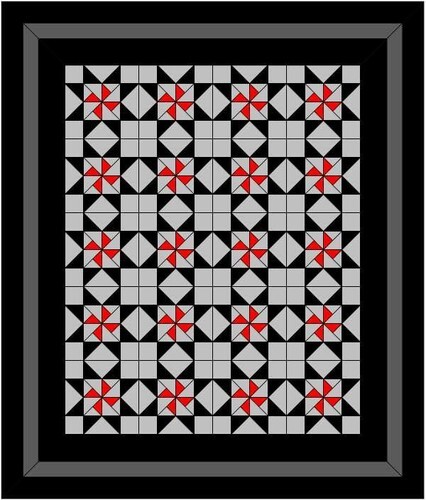 Blocks are 5 inch log cabins sewn from quaint 1 1/4 Inch strips.