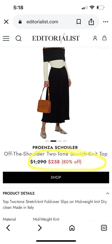Elegant off-shoulder sweater by Proenza Schouler.
