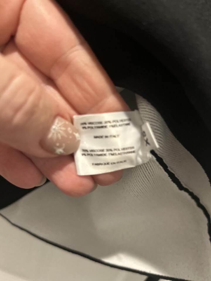Black body with a contrasting wide white neckline.
