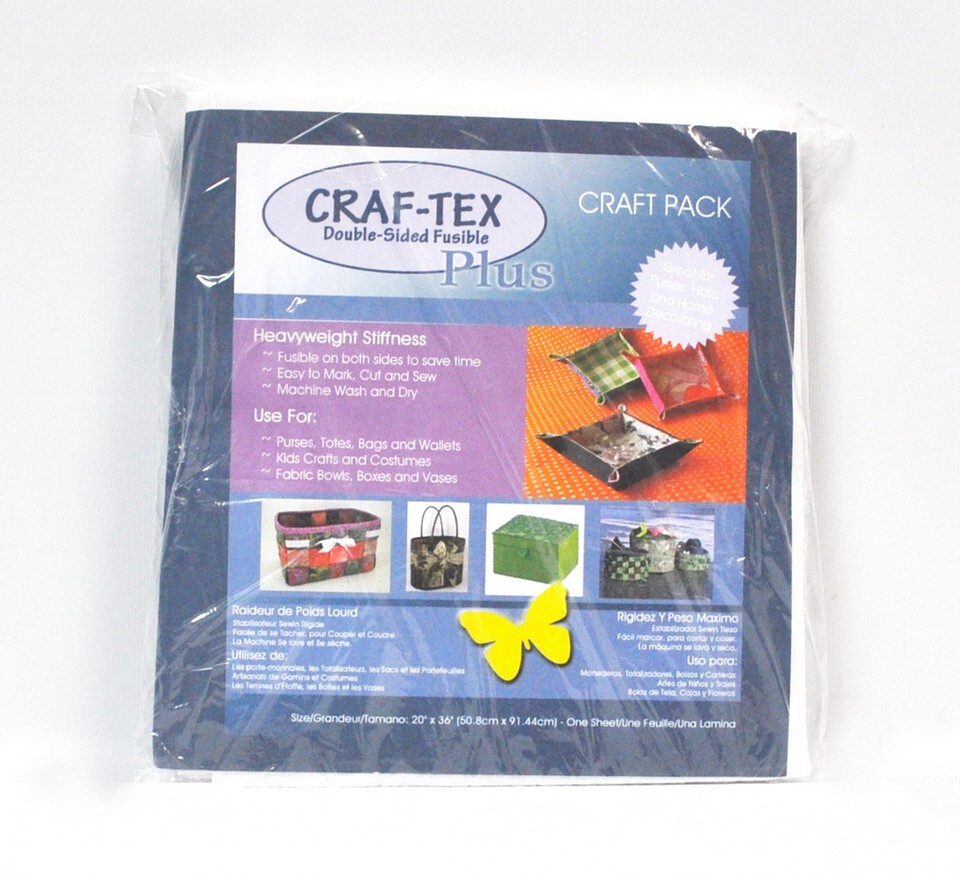 Bosal Craf-Tex Double-Sided Fusible Plus Craft Pack 437F20 Medium weight Stiffness: Stiff Sew in Interlining, easy to mark, cut and sew, and machine wash and dry. Use For: Hats, totes, bags and wallets, kids crafts and costumes, fabric bowls, boxes, and vases. This product is fusible on both sides. Use a non-stick pressing sheet or baking parchment paper under product when ironing. Made in the U.S.A. 437F20