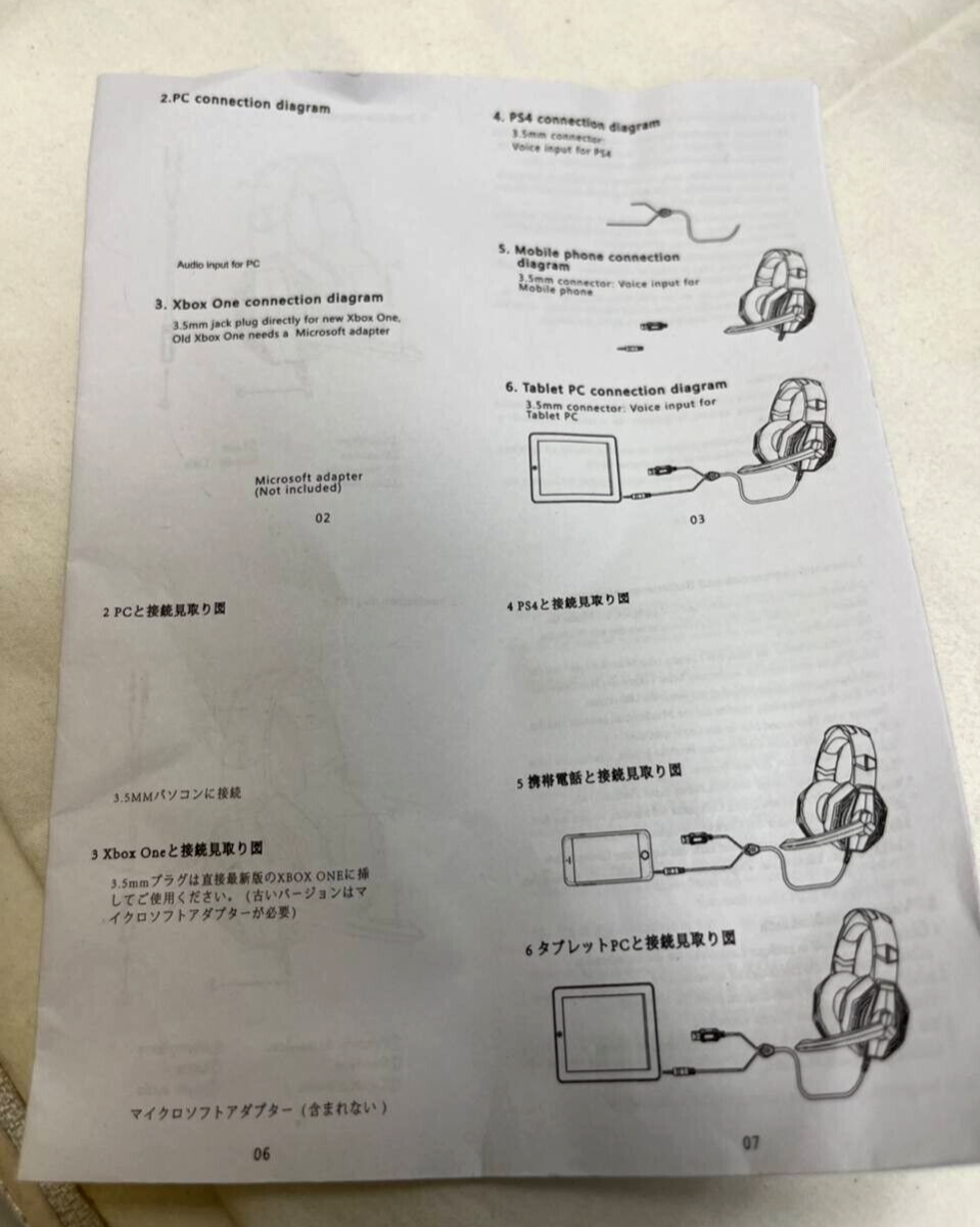 Item includes: Kootop A701 Wired Gaming Headset and Instructions Sheet. It does NOT include Microphone.