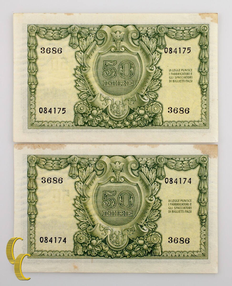 1951 Italy 2 Sequentially Numbered 50 Lire and 38 similar items