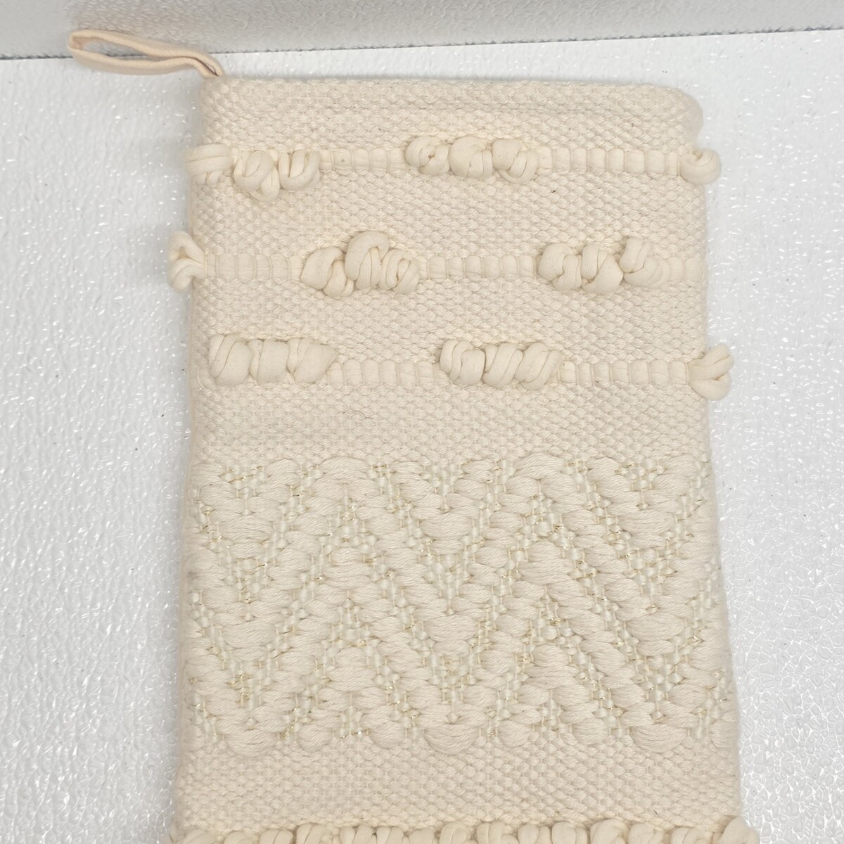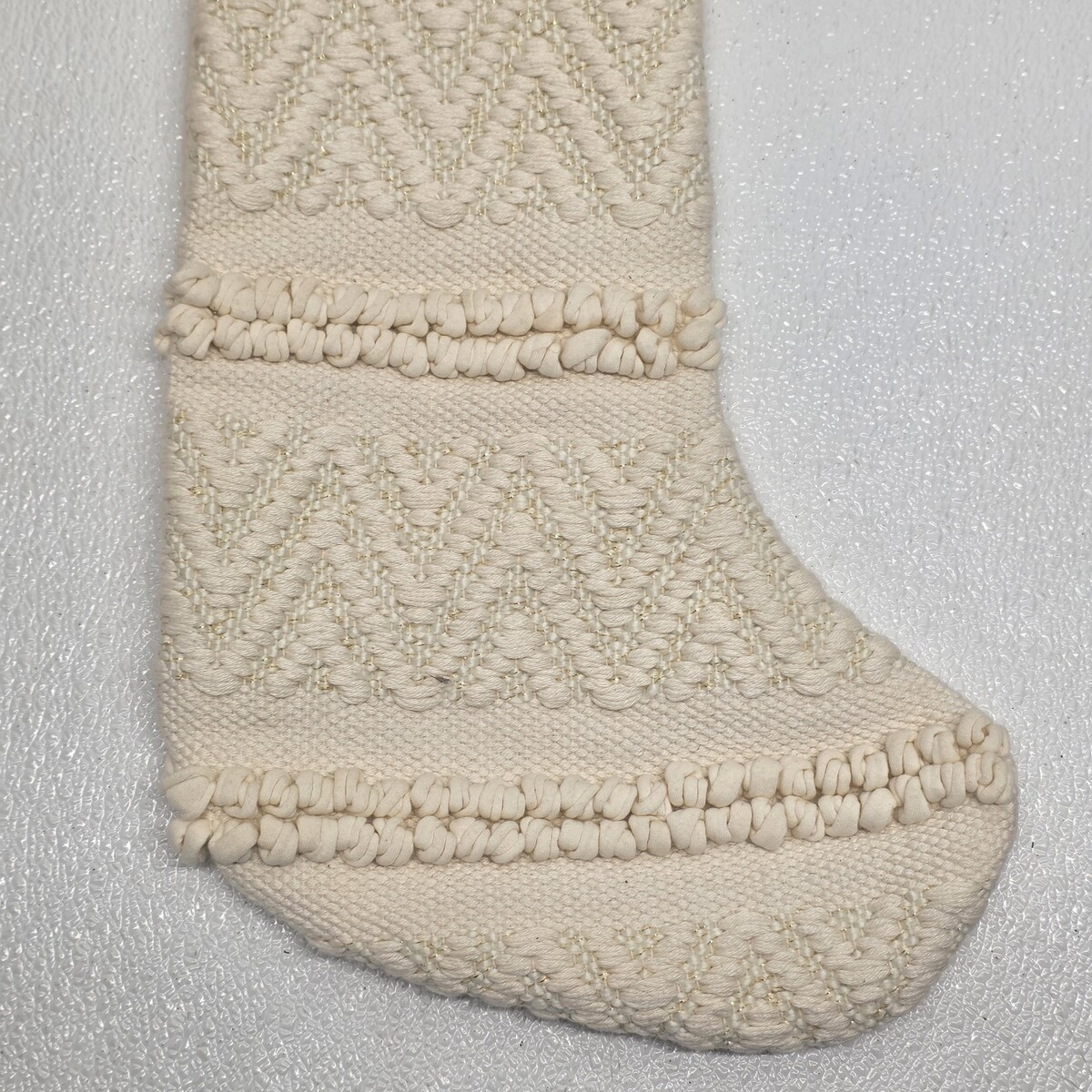 Creative Co-Op Woven Cotton Blend Classic Cream White Stocking. Images show actual item that will ship.