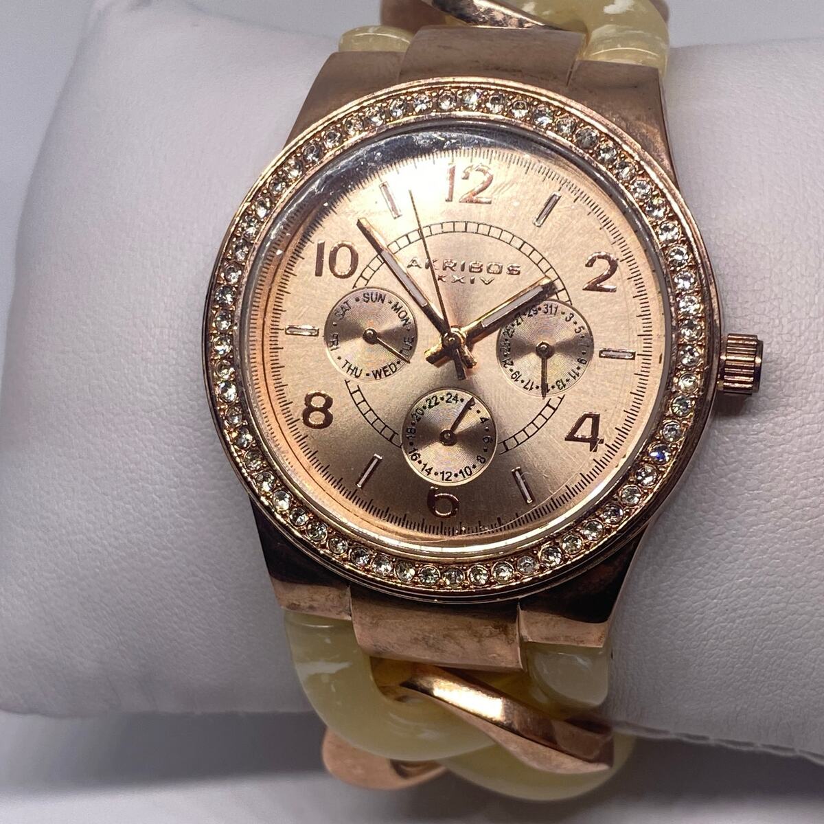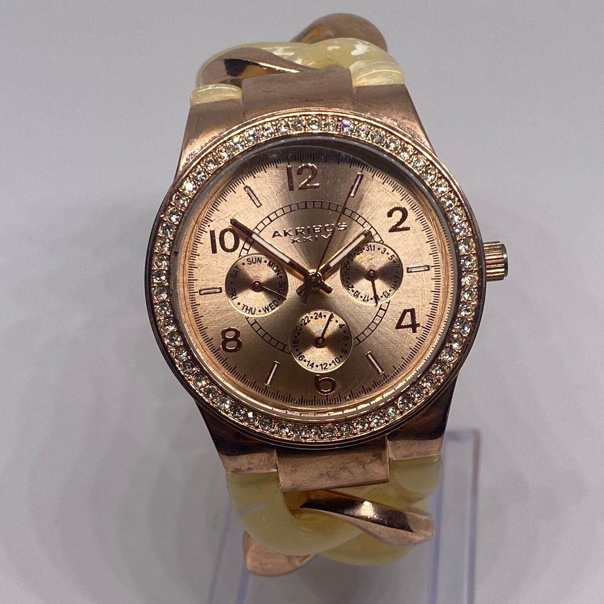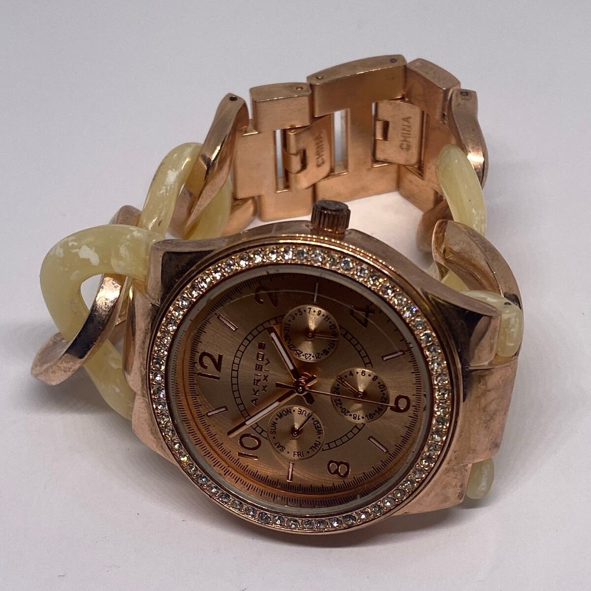 Akribos XXIV Rose Gold-Tone Stainless Steel Chain Style Watch – New Battery