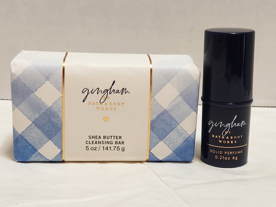 Bath & Body Works "GINGHAM" Set Shea Butter Cleansing Bar Soap & Prefume Stick