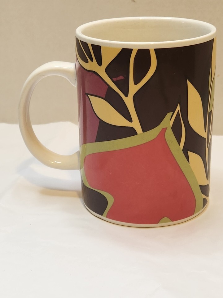 Starbucks 2004 Multi-Color Retro Floral Botanical Coffee Mug Large Leaf Vintage