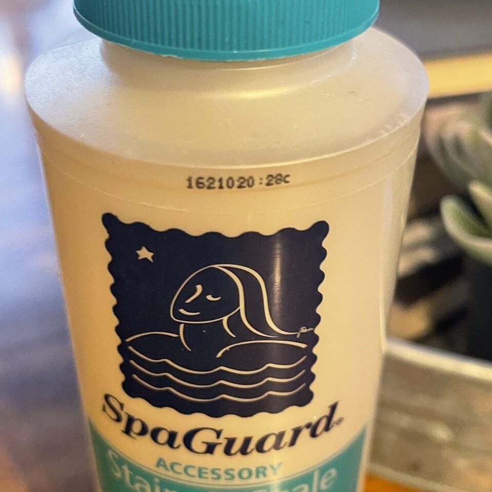 SpaGuard Spa Stain/Scale Control is a 16 fl oz solution designed for spa maintenance. Produced by SpaGuard, this product helps prevent and remove stains and scale buildup in your spa. It comes in a convenient 1 pint size for easy application and is suitable for use in spas and hot tubs.