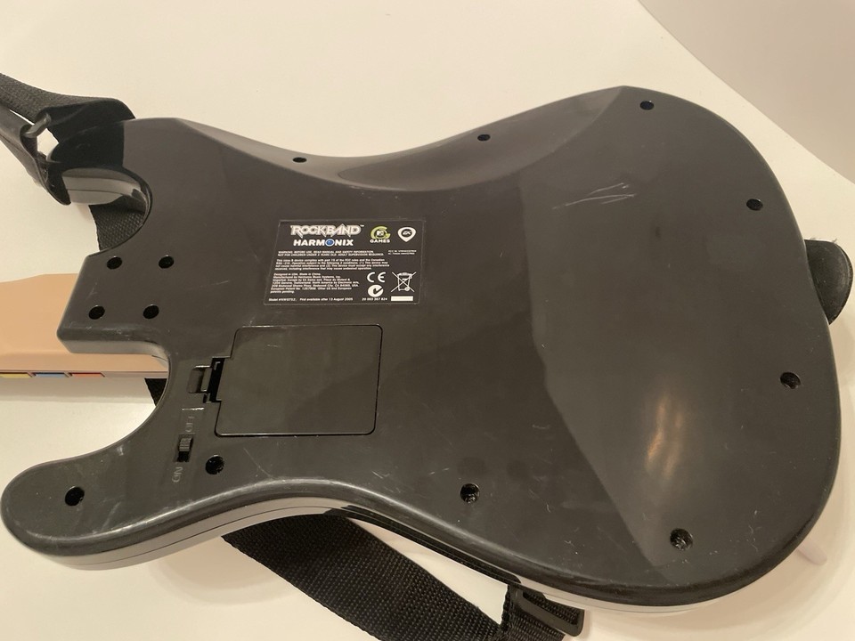 The Wii Rock Band Guitar Fender Stratocaster Model Number NWGTS2 is a wireless guitar controller designed for the Nintendo Wii platform. Made of black plastic, this model Stratocaster is compatible with the Nintendo Wii console and various games and accessories. With the Harmonix brand behind it, this guitar offers a realistic and immersive experience for solo players looking to jam out in their favorite Rock Band games.