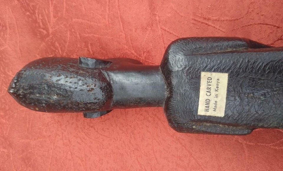 It is hand carved out of ebony ironwood and has a Made in Kenya sticker on the back.